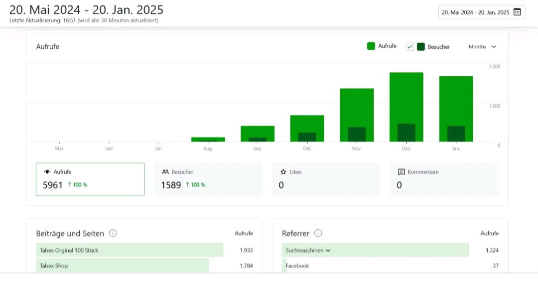 Es handelt sich um einen Onlineshop im Bereich Gesundheitswesen / Soziales / Pflege. Das Projekt wurde im 05-2024 gegründet und ist unter httsp://tabex-kaufen.de zu erreichen. Pro Monat besuchen das Projekt rund 750 Unique Visitors.