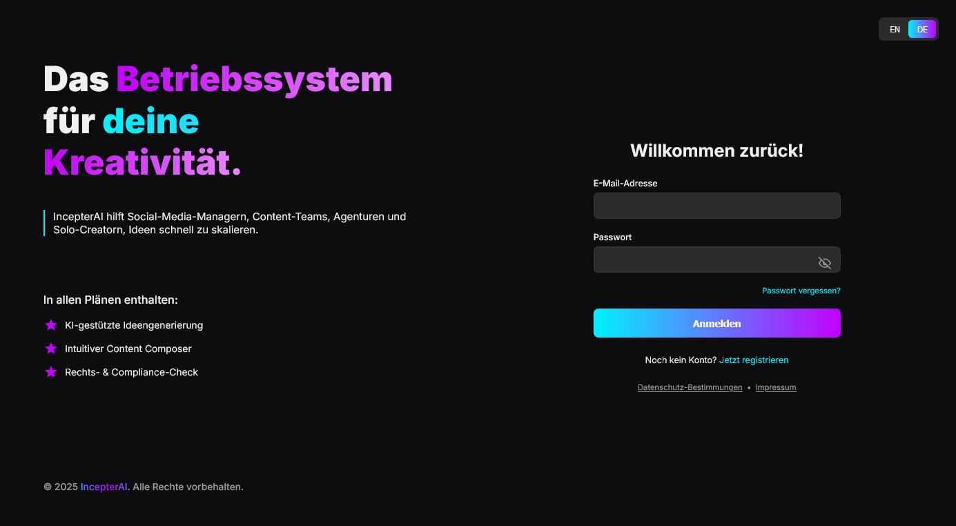 rechtliche Prüfung bis hin zur Veröffentlichung. IncepterAI bündelt