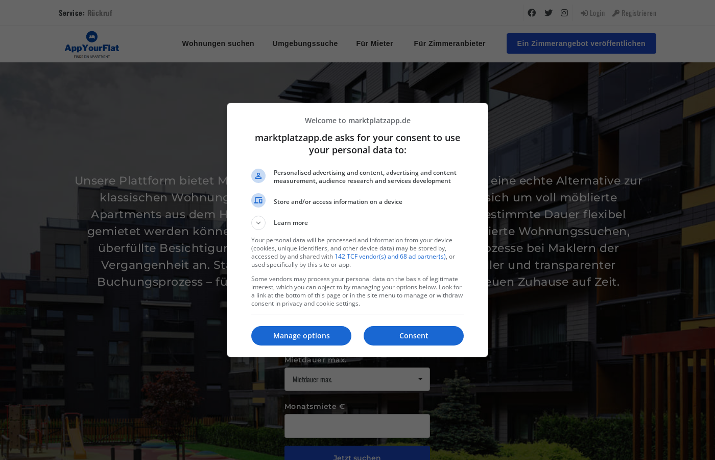 Marktplatz und Verkaufsplattform Vermittlung von möblierten Wohnungen und Apartments