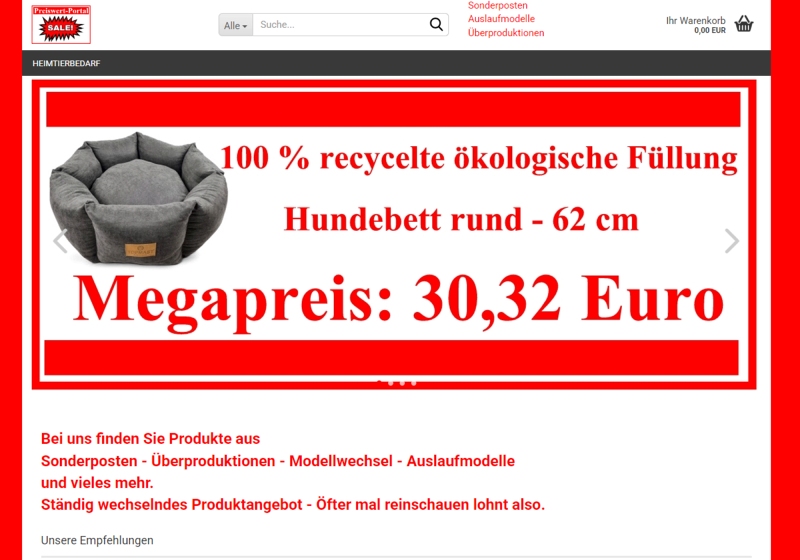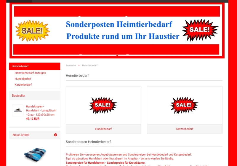 Zur Zeit begrenzt auf den Bereich Tierbedarf – aber mühelos auch auf andere Produktgruppen ausweitbar.