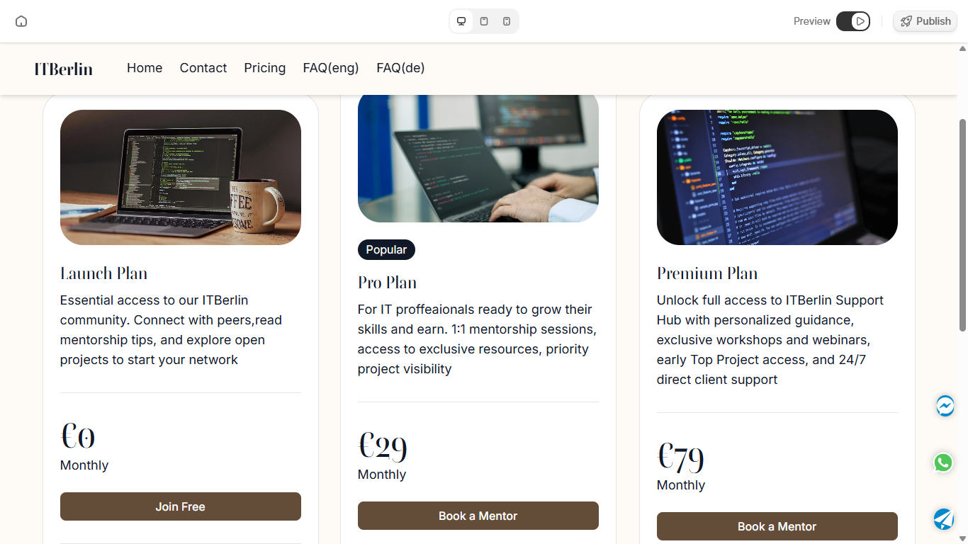 Vollständig aufgebaute, strukturierte und funktionale IT-Plattform für Mentoring, Training und kuratierte Projekte. Die Website bietet: