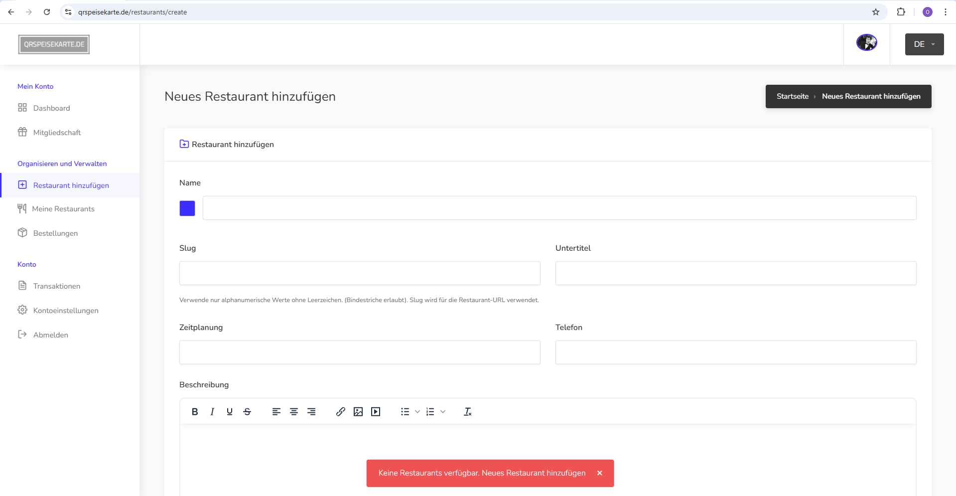 Aufgrund zeitlicher Einschränkungen biete ich mein vollständiges Webprojekt QRspeisekarte.de zum Verkauf an. Es handelt sich um eine digitale Plattform, die Gastronomen, Hotels, Bars, Cafés und Caterern ermöglicht, schnell und einfach digitale Speisekarten zu erstellen, zu verwalten und über individuell anpassbare QR-Codes für ihre Gäste bereitzustellen.