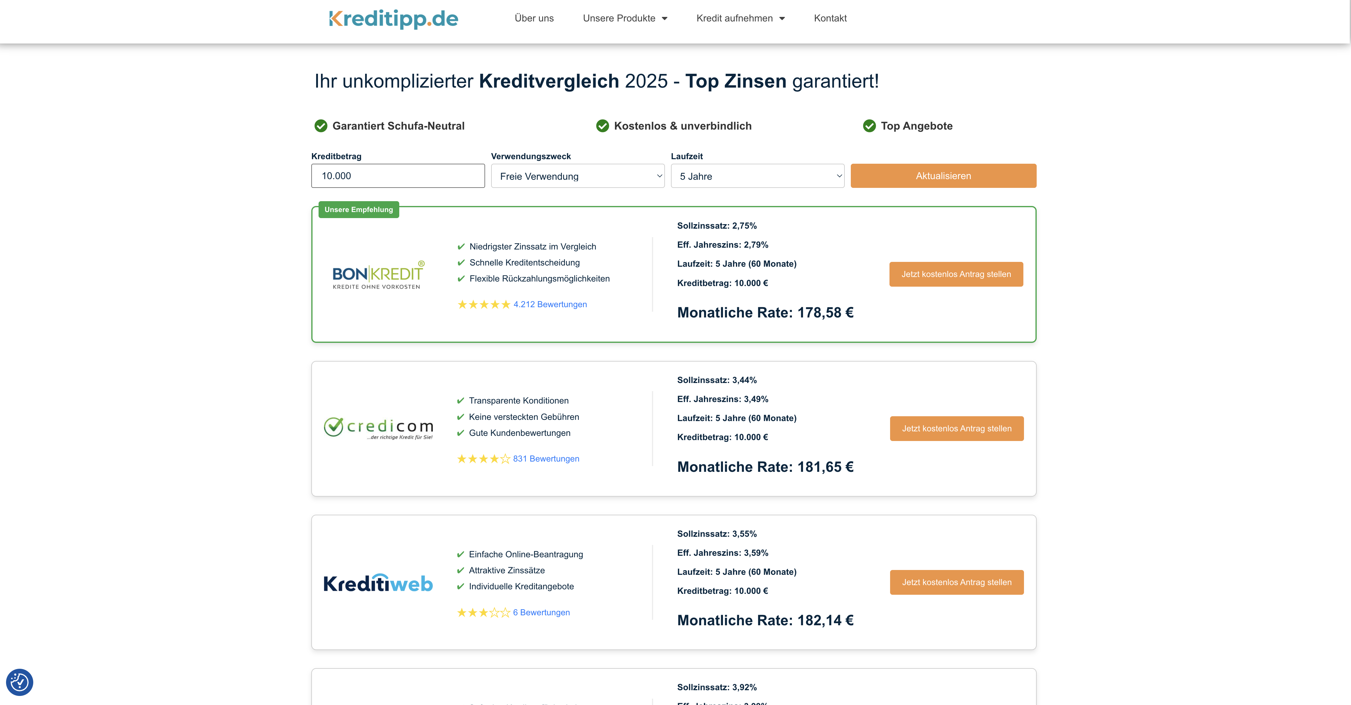Vergleichsportal für Kredite, Kredit- und Girokarten sowie Fest- und Tagesgeldkonten