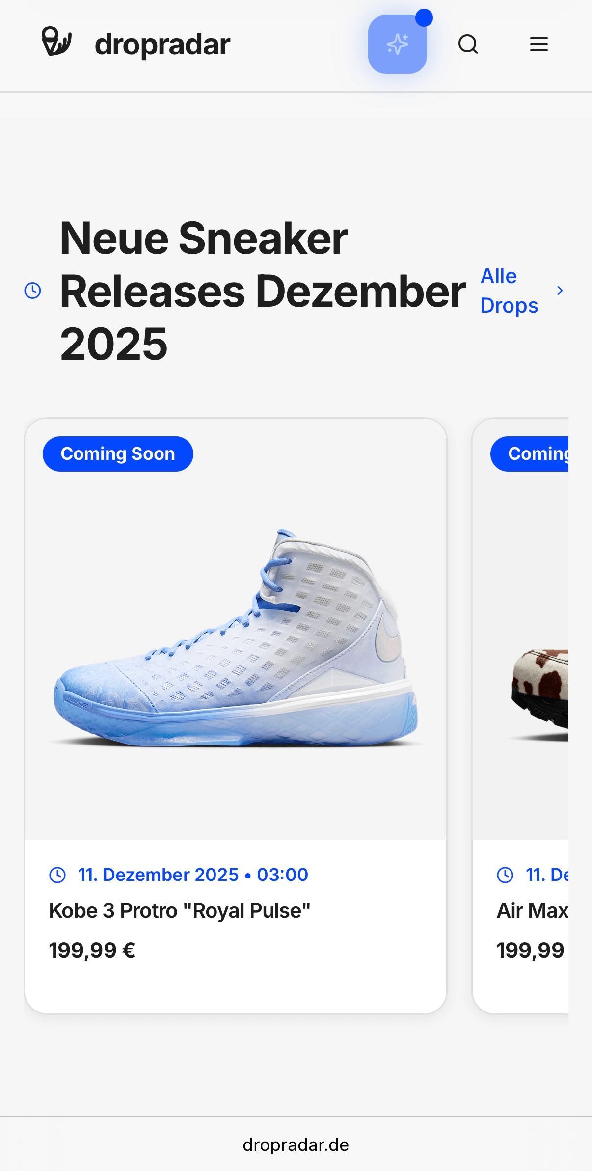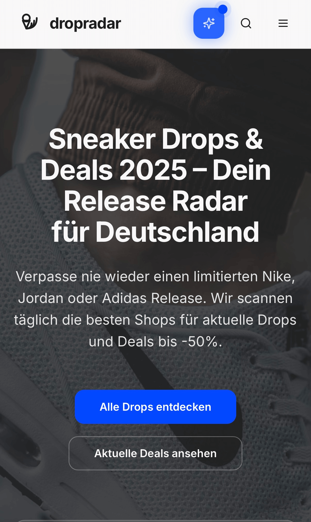 Schlüsselfertige Sneaker-Affiliate-Website “DropRadar.de”