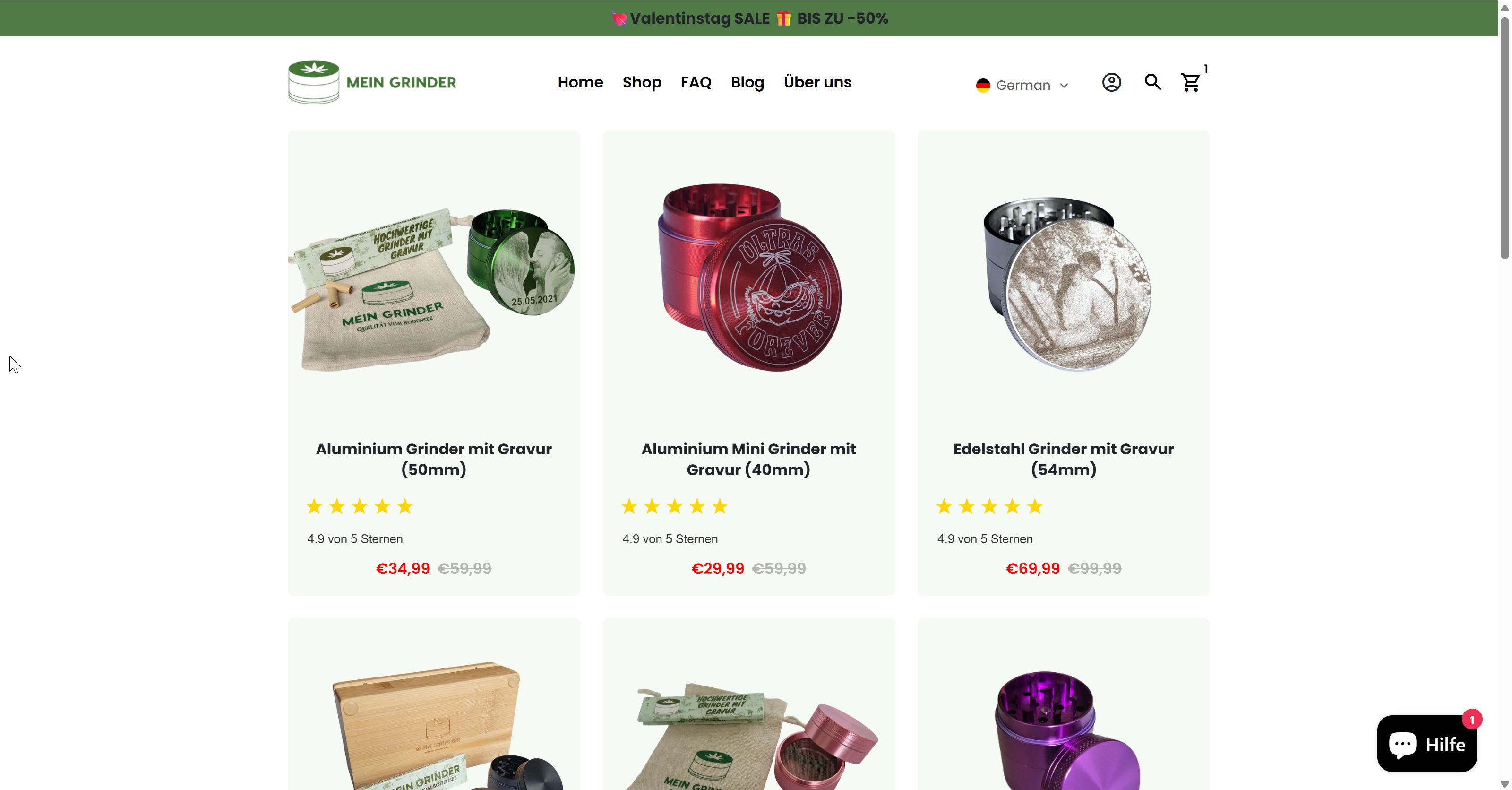 Es handelt sich um einen Onlineshop, gegründet im 01/2024, erreichbar unter https://mein-grinder.com . Der Shop verzeichnet derzeit rund 530 Unique Visitors pro Monat und generiert einen monatlichen Umsatz von 1.095 € bei einem Gewinn von 220 €.