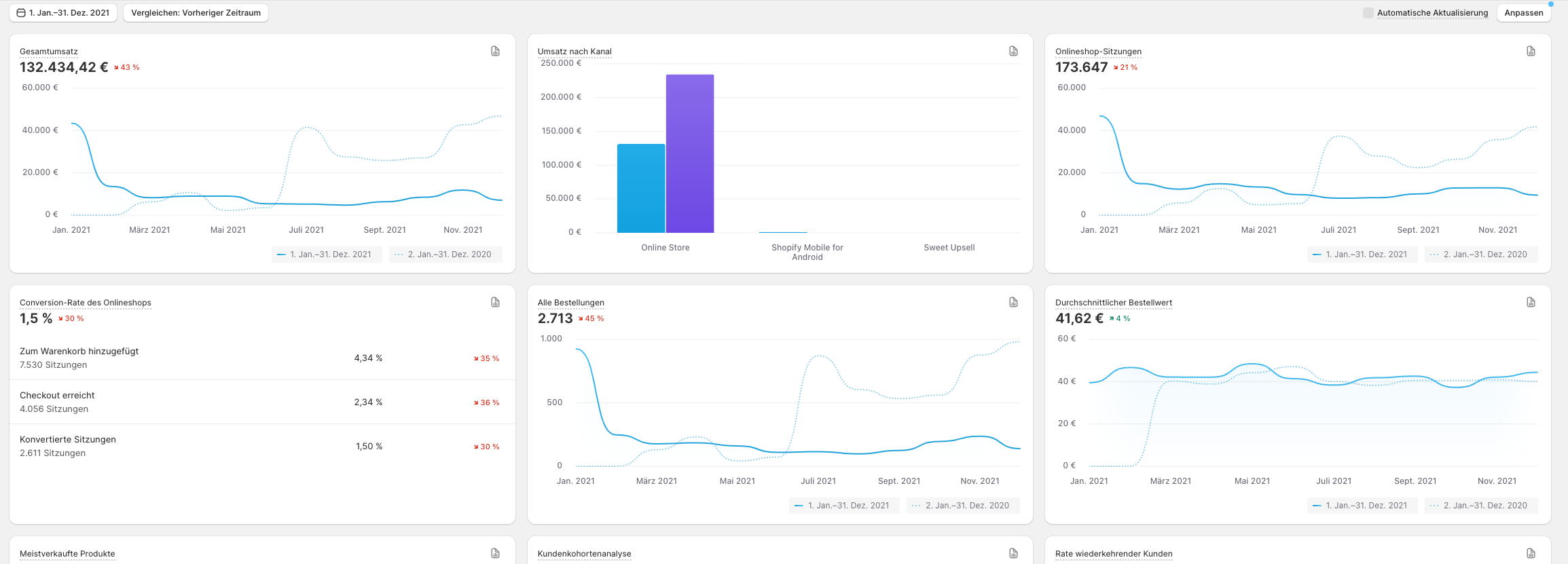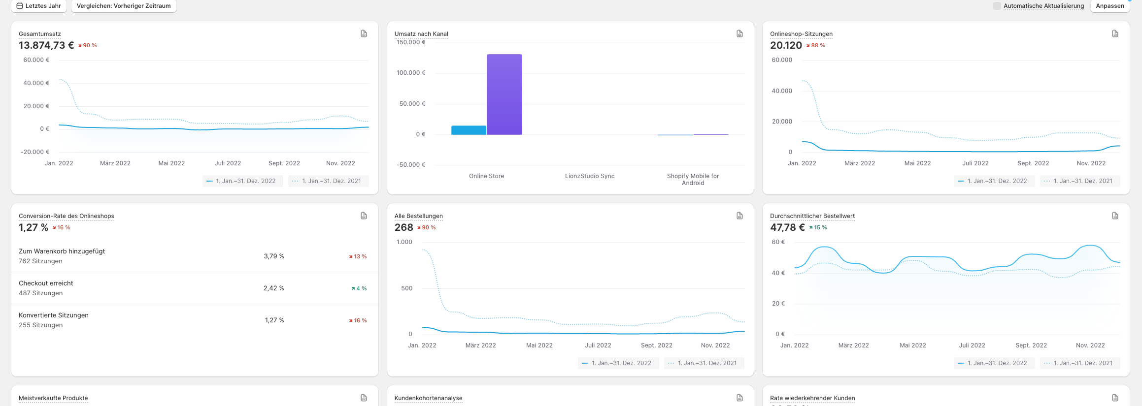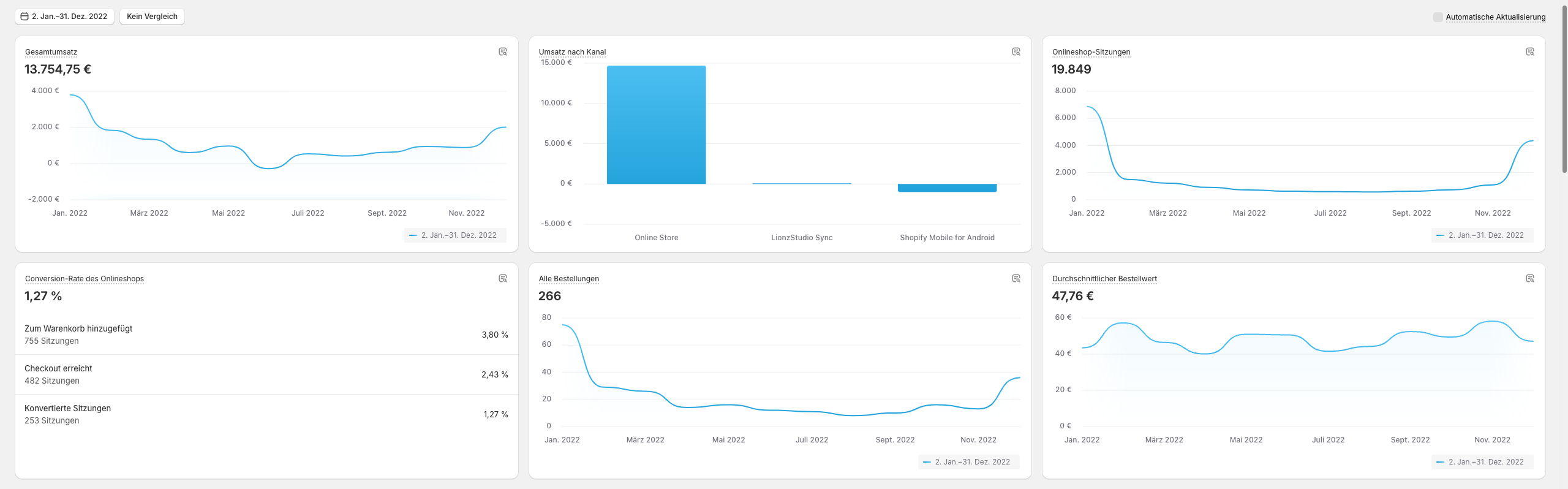 Umsatzscreenshots seit Shop-Start sind vorhanden und werden bereitgestellt