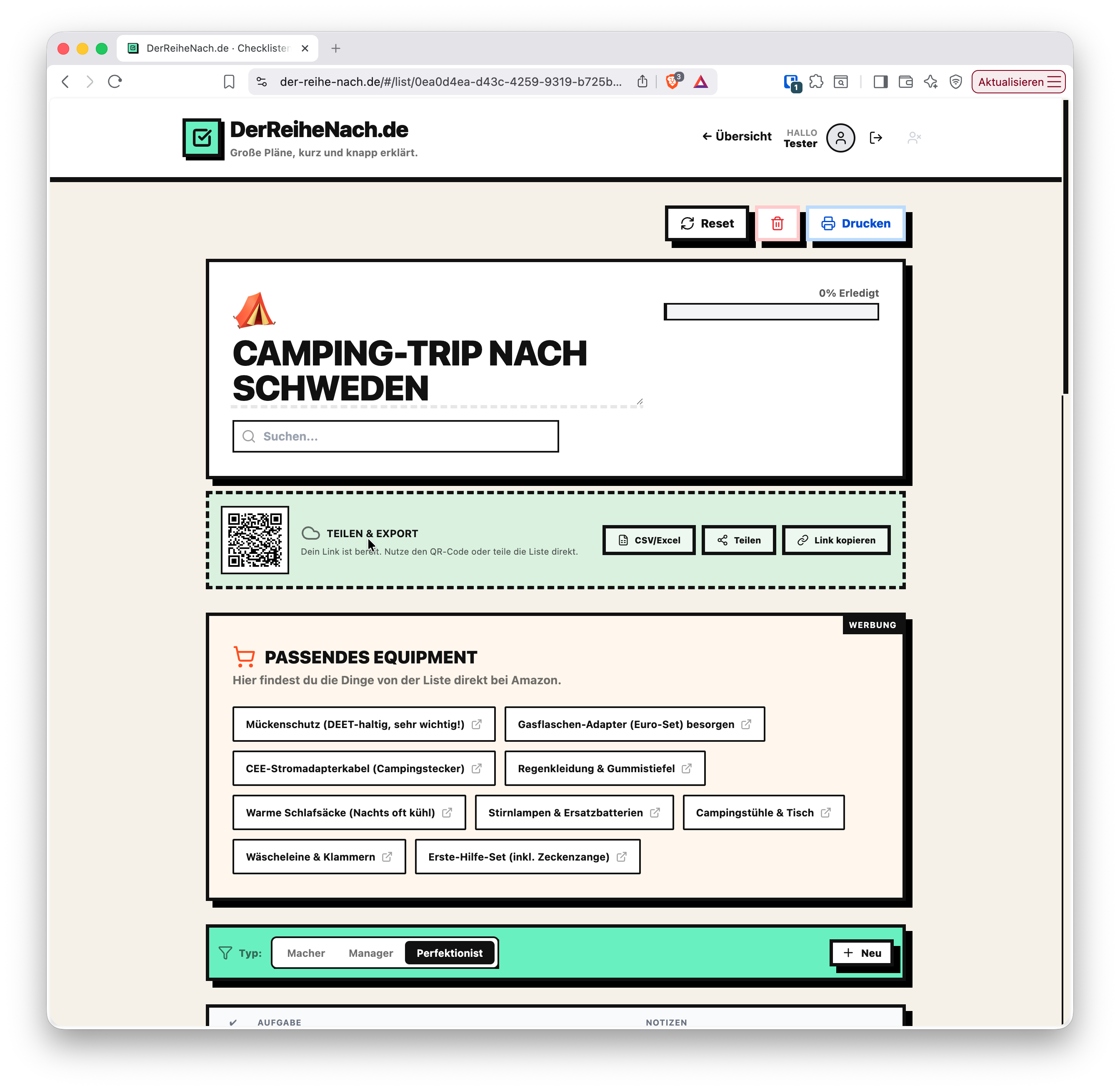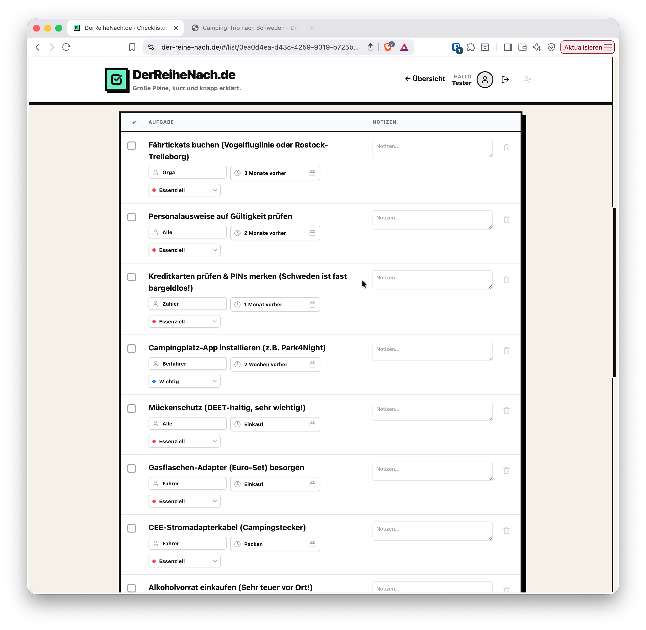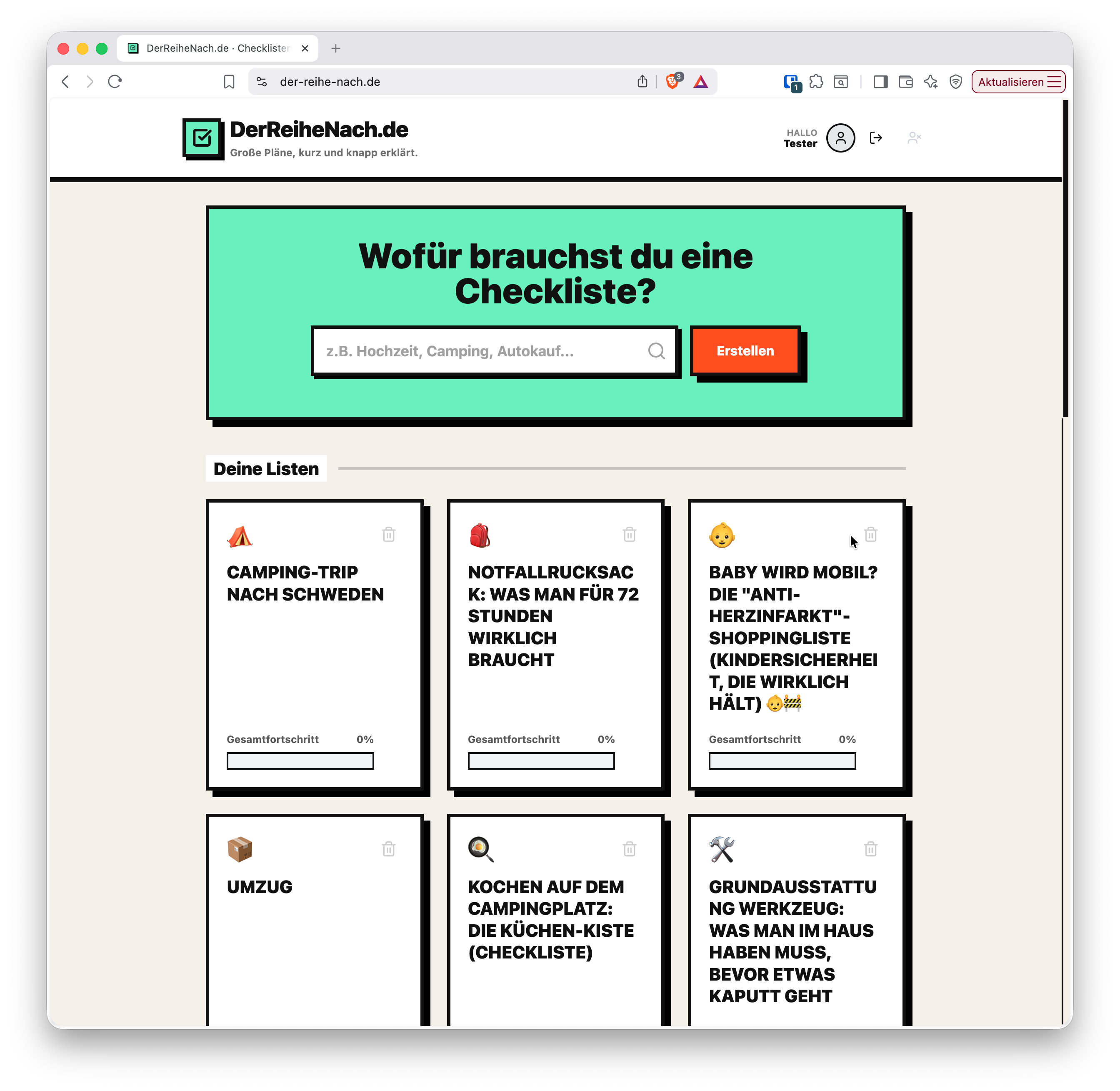 Zum Verkauf steht das innovative Web-Projekt derreihenach.de (inkl. der-reihe-nach.de). Es handelt sich um ein schlüsselfertiges Tool, das mithilfe von KI (Google Gemini) hochwertige Checklisten für jeden Lebensbereich erstellt und diese vollautomatisch monetarisiert.