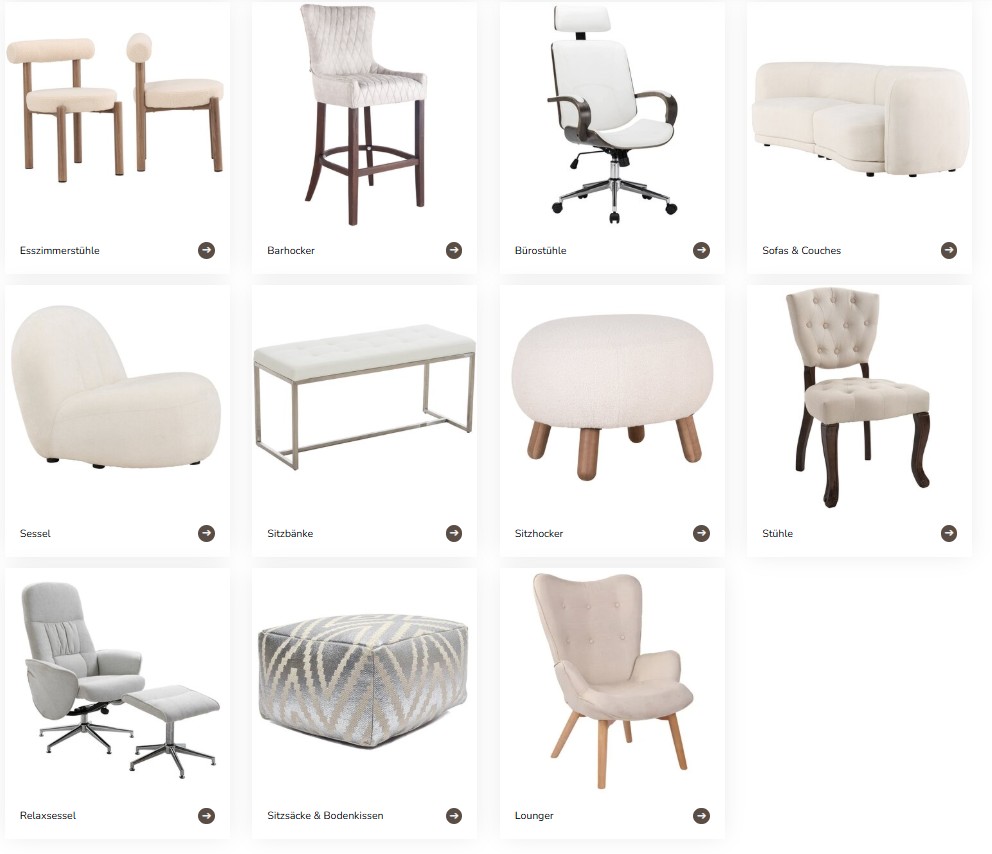 Etablierter Möbel-Onlineshop mit skandinavischem, modernem und Landhaus-Design