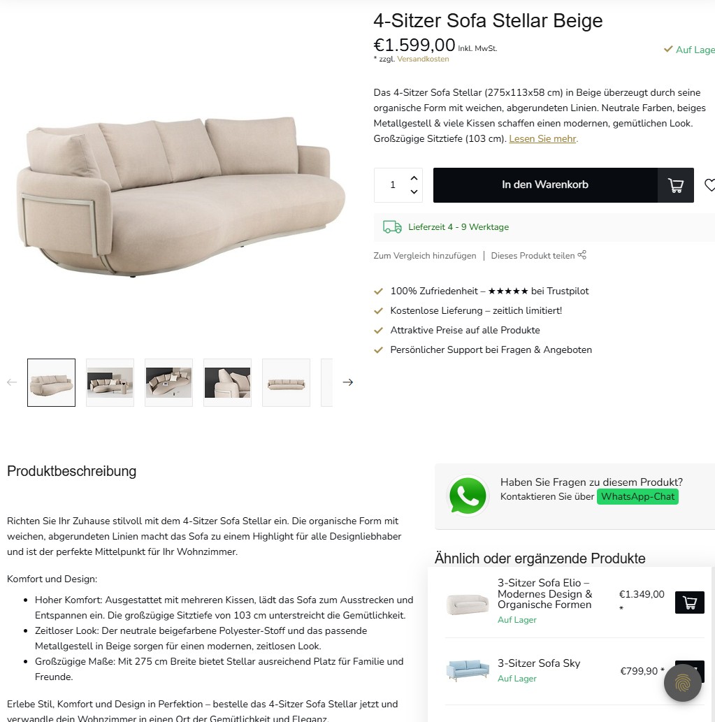 Aus diversen Gründen möchte ich mein Webprojekt ‘Profitabler Möbel-Onlineshop’ verkaufen.