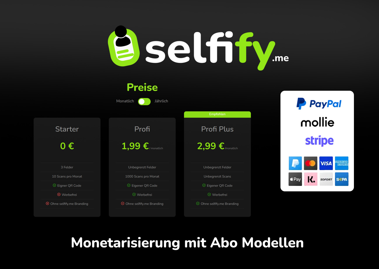 SaaS-Webprojekt (selfify.me) als einsatzbereite Geschäftsidee zu verkaufen. Innovatives Projekt für das bereitstellen von digitalen Visitenkarten mit QR-Codes, Bio Pages und Print Visitenkarten.